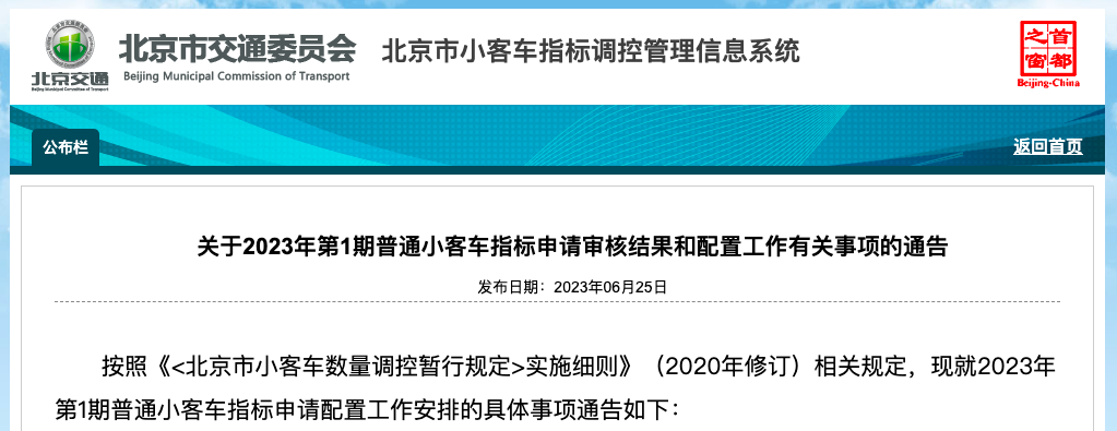 根據《北京市小客車數量調控暫行規定》和實施細則(2020年修訂)相關規定,現就2023年第1期普通小客車指標申請配置工作安排的具體事項通告如下:
