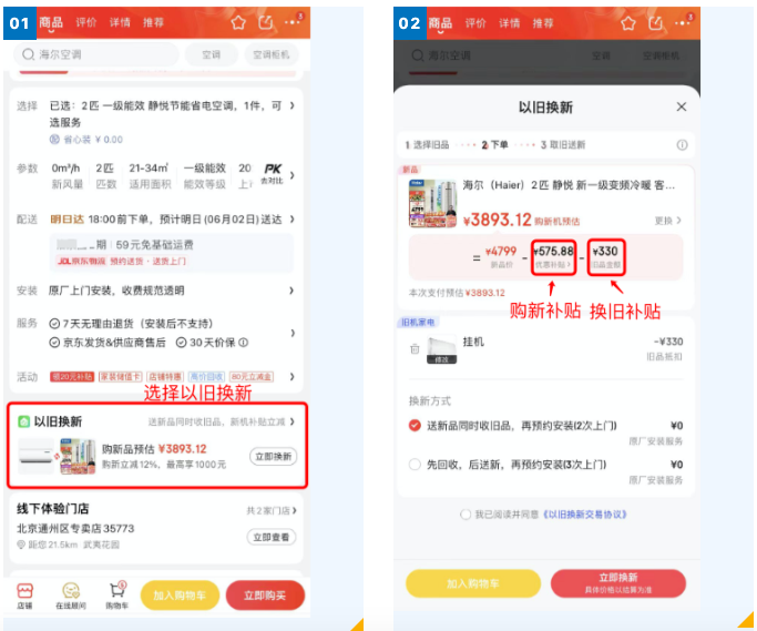 ①在搜索框輸入“北京以舊換新”進入專屬活動頁,挑選心儀的商品和型號。