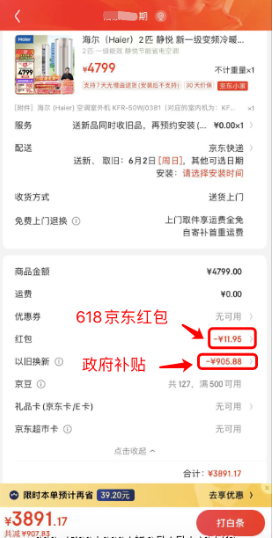 目前剛好是京東618活動,購買商品前記得先領取紅包喲(每天3次,無門檻,任意商品可用),京東商城自行提供的紅包、滿減券可以與本次政府提供的消費補貼疊加使用!