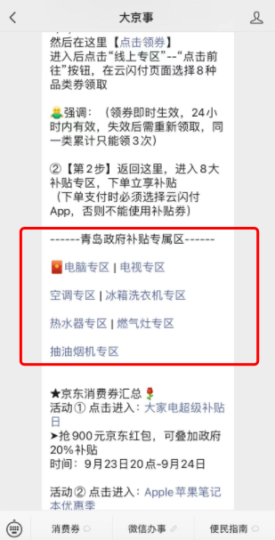 沒有云閃付App需先自行下載,已有云閃付的可直接在「大京事」公眾號回復“青島消費券”進入領券入口。