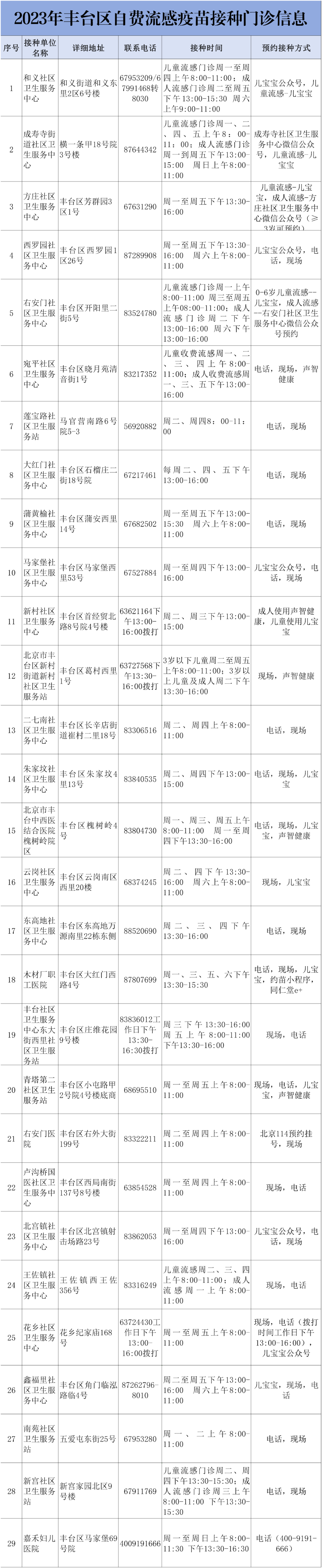 北京豐臺區流感疫苗接種門診服務時間公示來了,具體事宜可咨詢接種門診