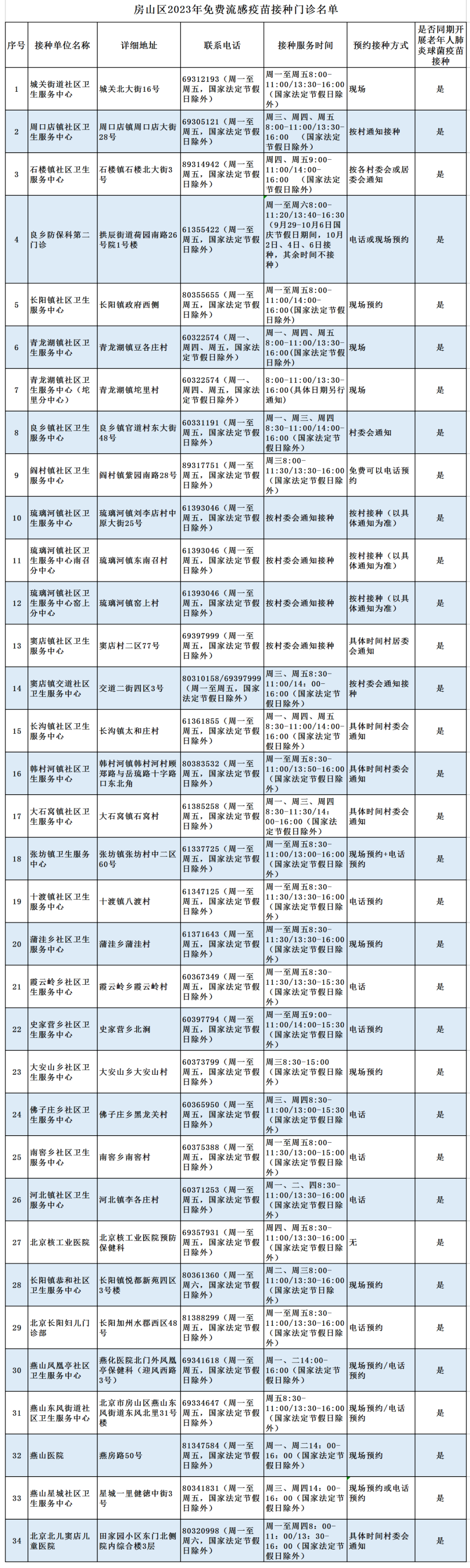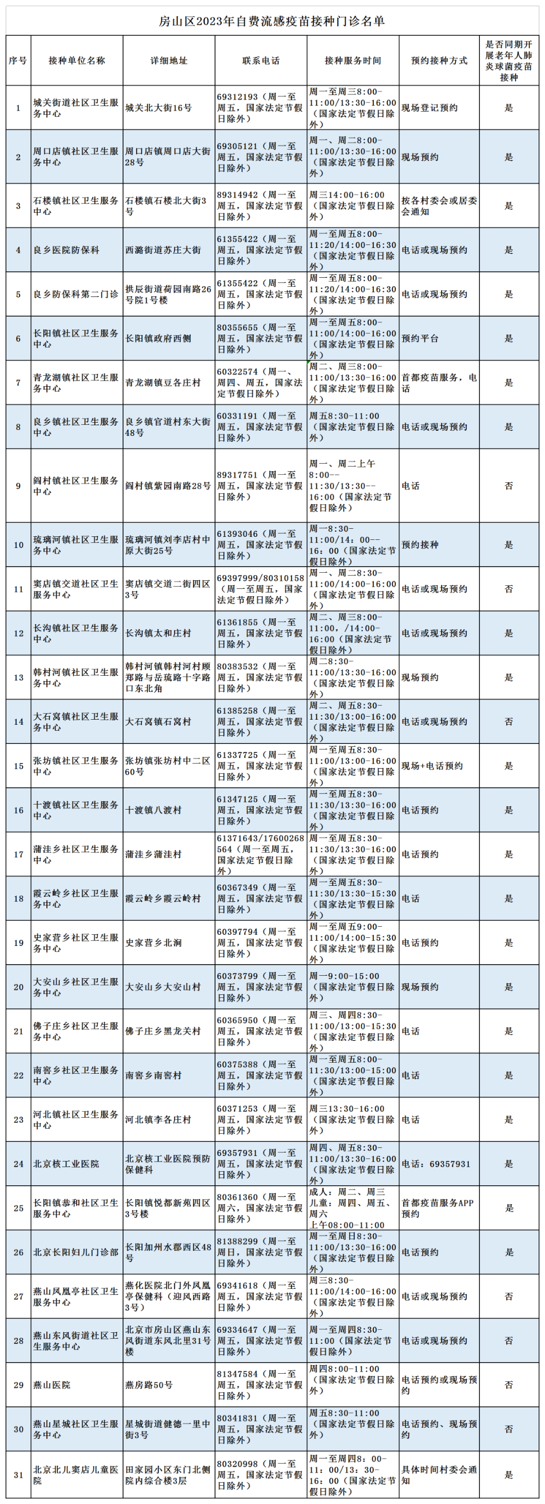 北京房山區(qū)流感疫苗接種門診服務時間公示來了,具體事宜可咨詢接種門診