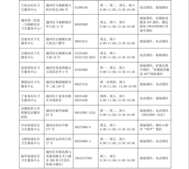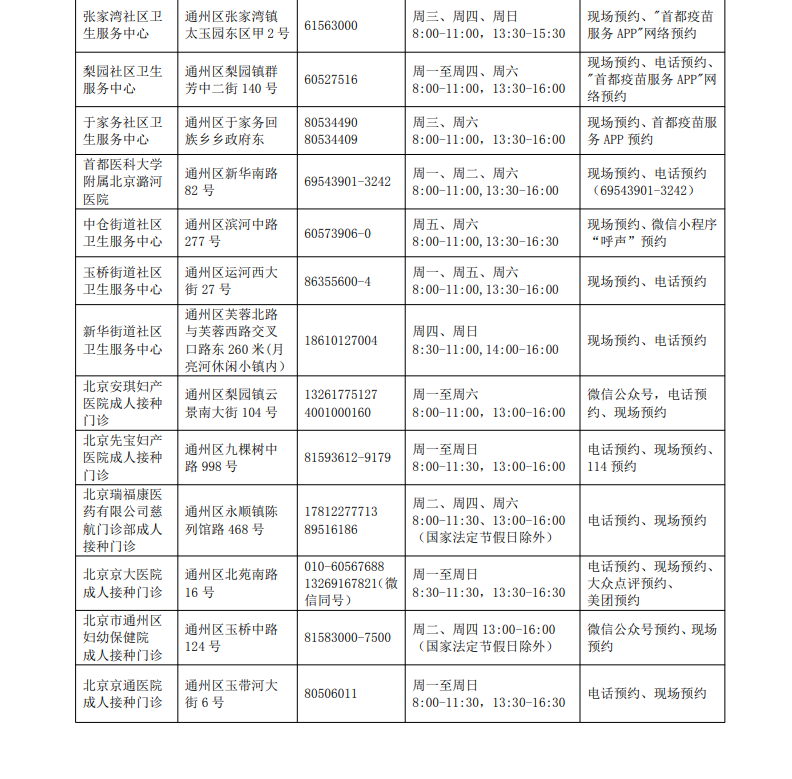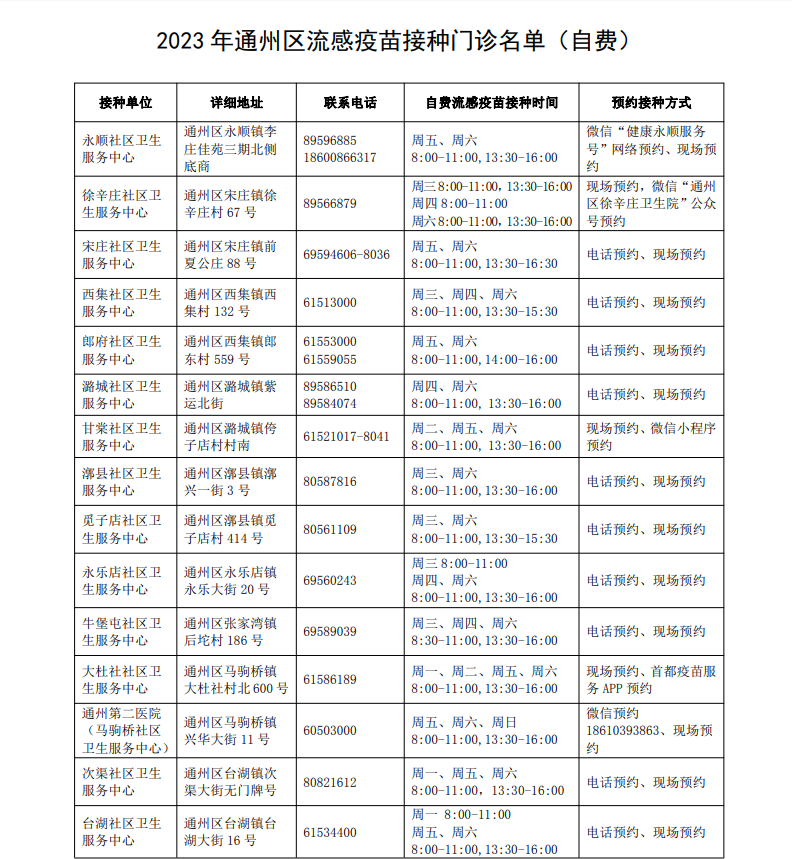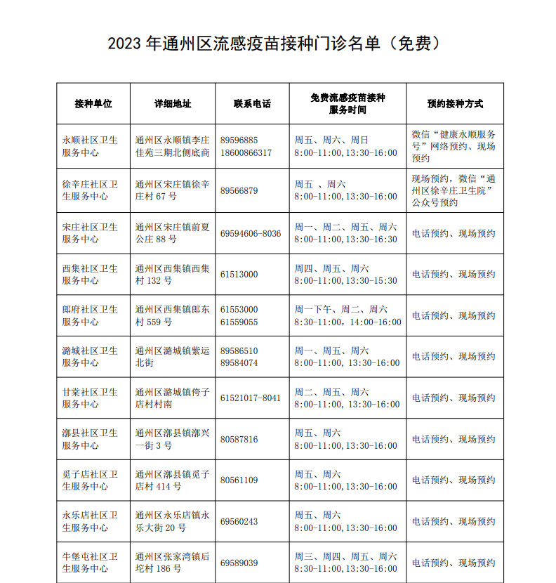 北京通州區流感疫苗接種門診服務時間公示來了,具體事宜可咨詢接種門診