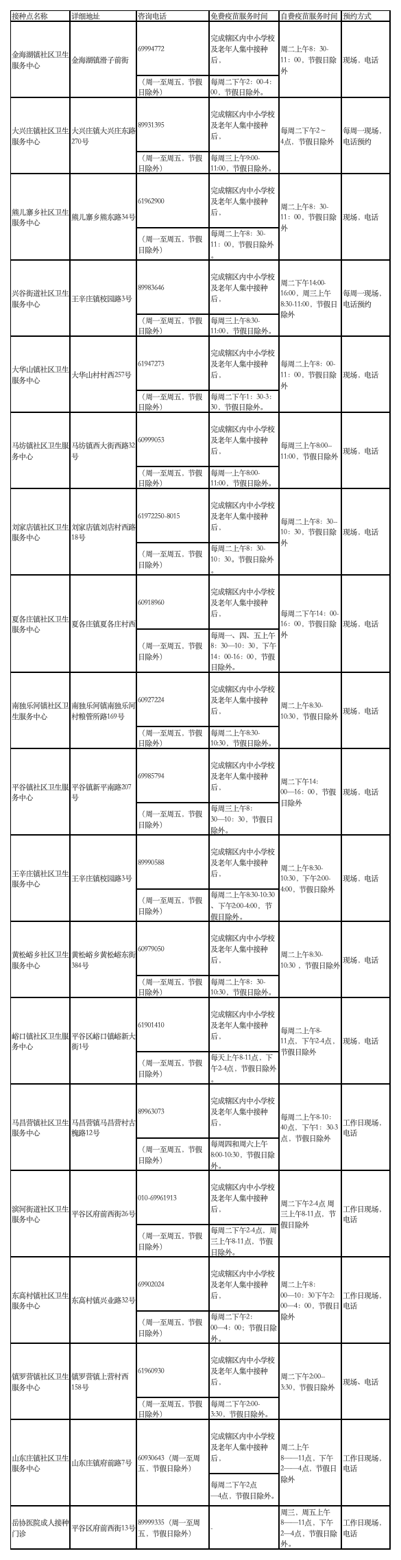 北京平谷區流感疫苗接種門診服務時間公示來了,具體事宜可咨詢接種門診
